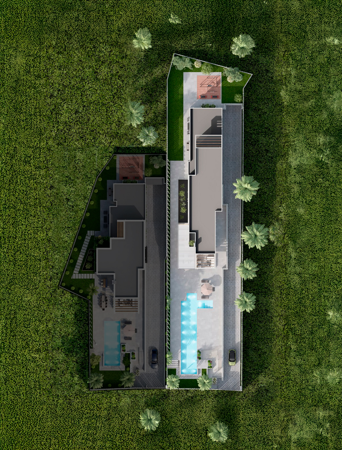 Villa Tipo И es una vivienda moderna y luminosa. Su diseño destaca por formas originales que aportan confort y privacidad. La parcela incluye piscina, terraza con pérgola y barbacoa, jardín con zona lounge y aparcamiento privado. En la planta principal se distribuyen varias estancias: salón, cocina, dormitorios, baños y una amplia terraza. El sótano alberga garaje, gimnasio, zona de descanso, lavandería, sala técnica, trastero y un patio interior. Ideal para quienes buscan estilo, funcionalidad y bienestar.